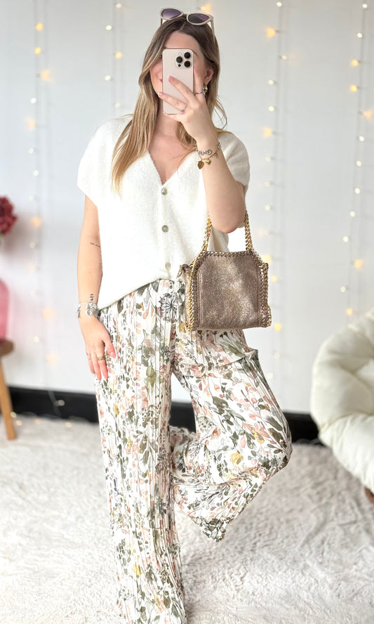 Pantalon plissé fleuri PEARL kaki (34-48) 🇮🇹 - expédition vers le 29 avril