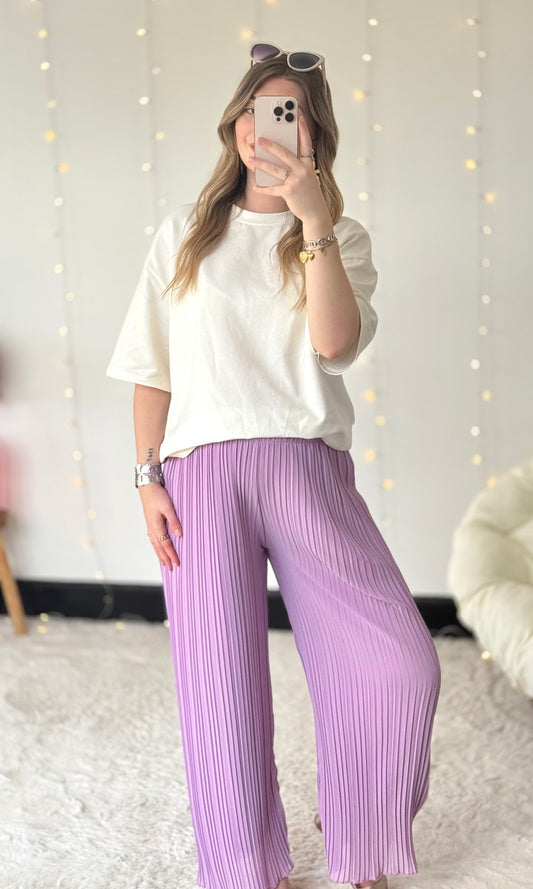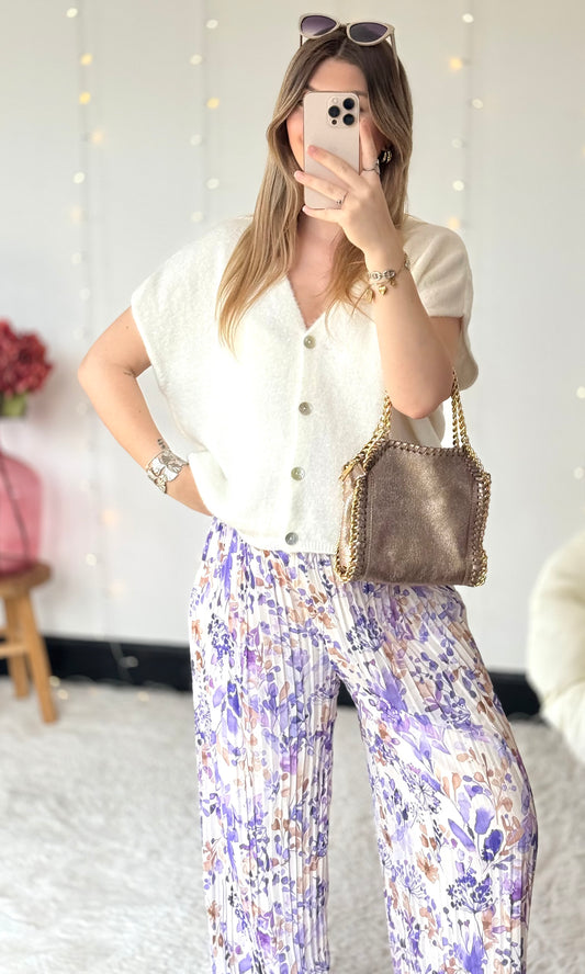 Pantalon plissé fleuri PEARL lilas (34-48) 🇮🇹 - expédition vers le 29 avril