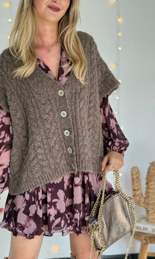 Pull taupe boutons dorés ALISON - expédition vers le 30/09