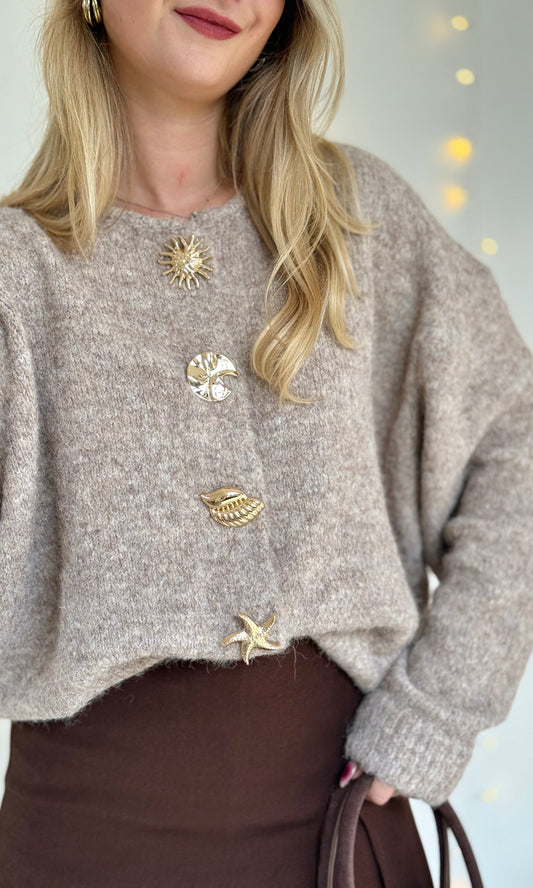 Pull taupe boutons dorés ALISON - expédition vers le 30/09