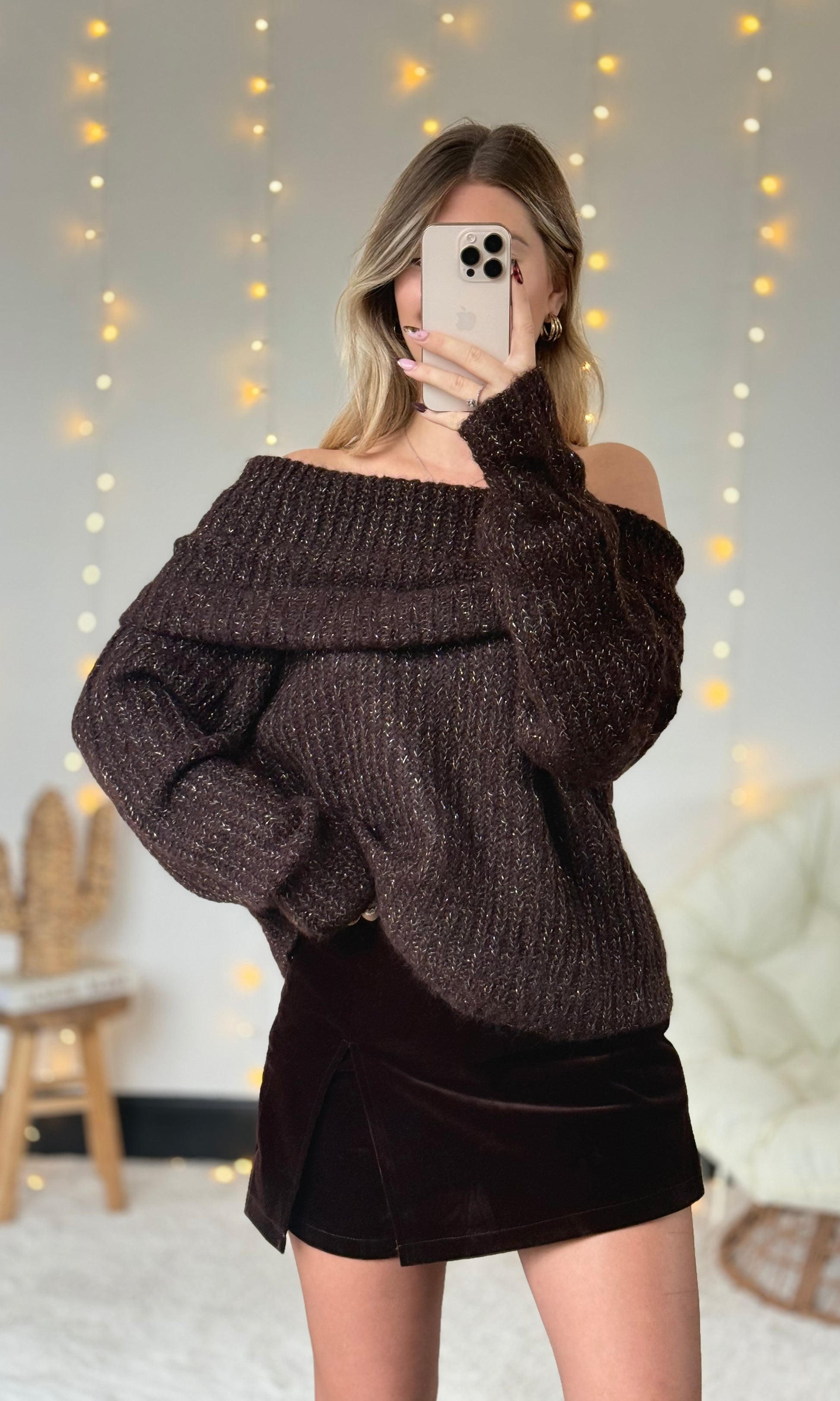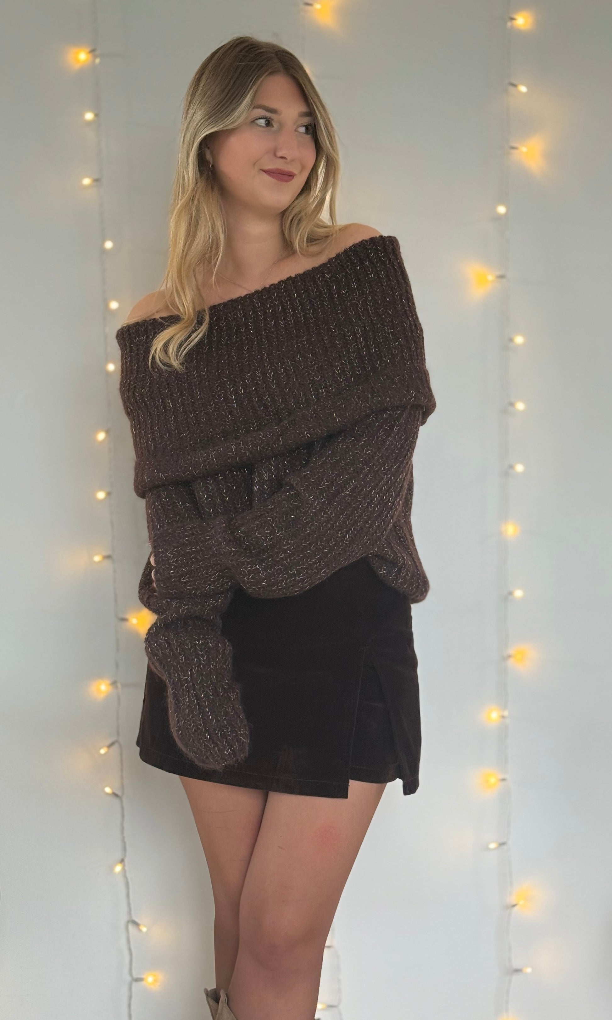 - Col bardot chocolat foncé