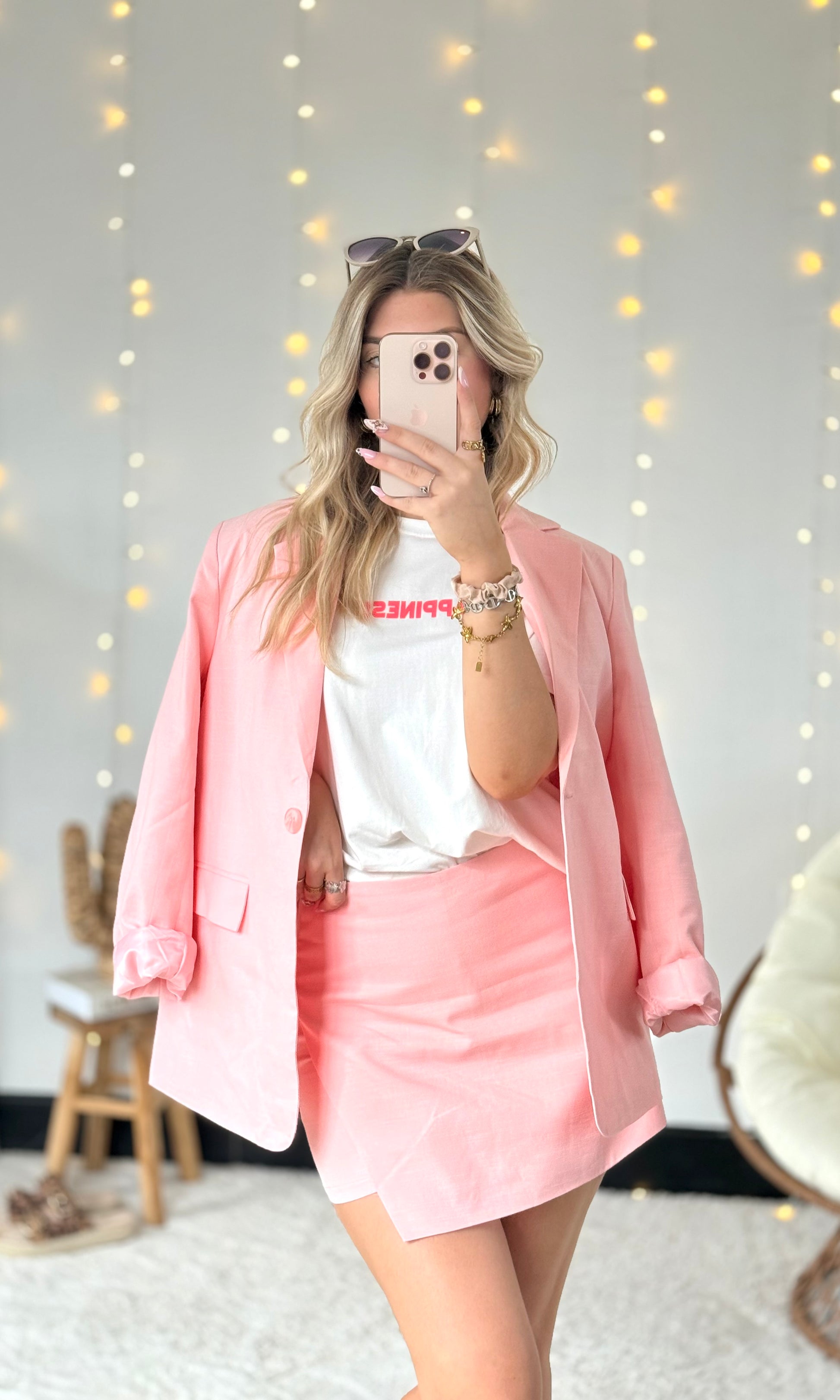 🩷 Je porte le blazer en SM et la jupe short en taille M pour mon S habituel et mesure 1,65m