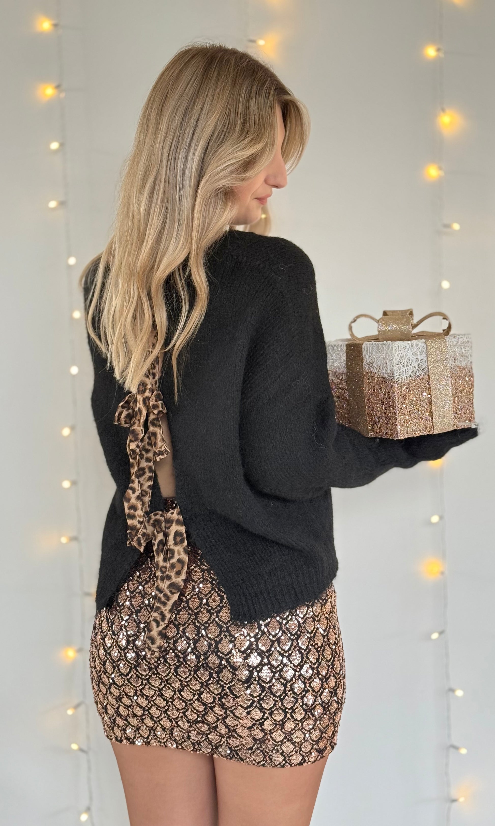 Pull noir avec noeuds léopard VICTOIRE