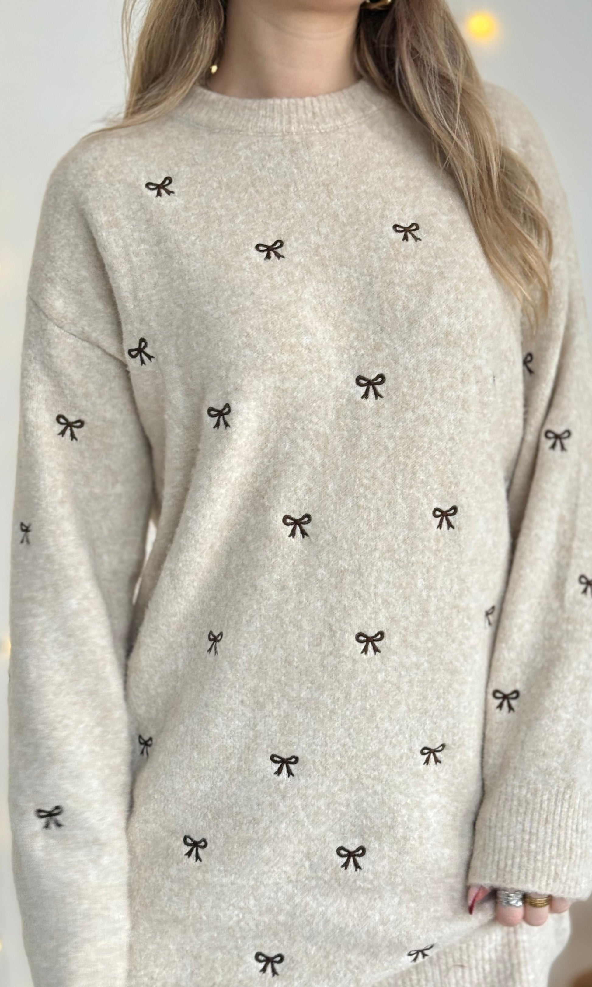 - Robe pull écrue avec les nœuds chocolat