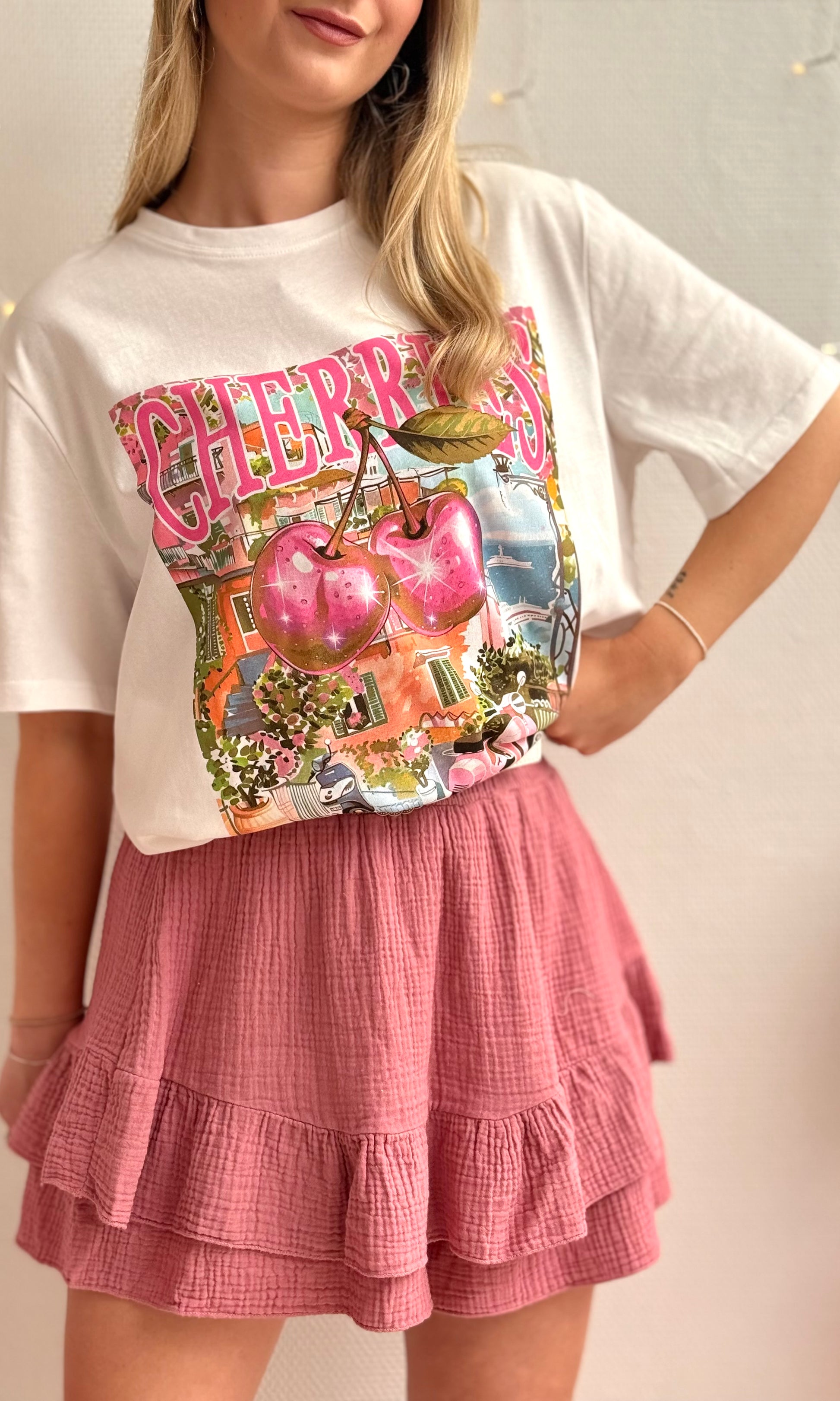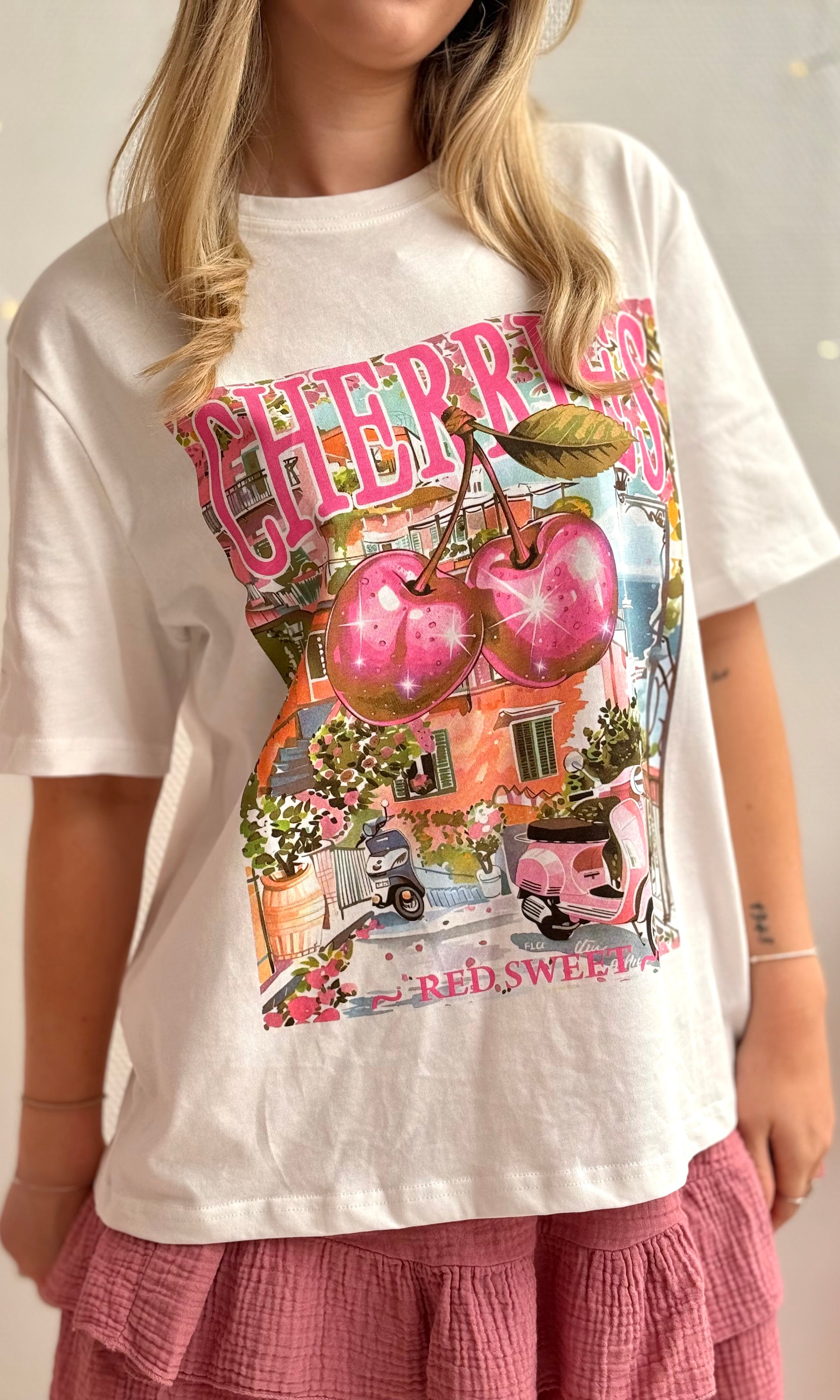 - T-shirt blanc avec dessin Cerises sur le devant  Â